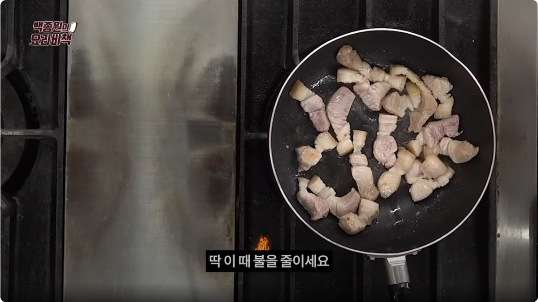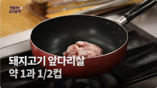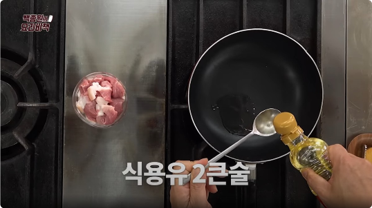 1. 냄비에 식용유 2큰술을 두르고, 돼지고기를 넣어 강불에 볶는다.