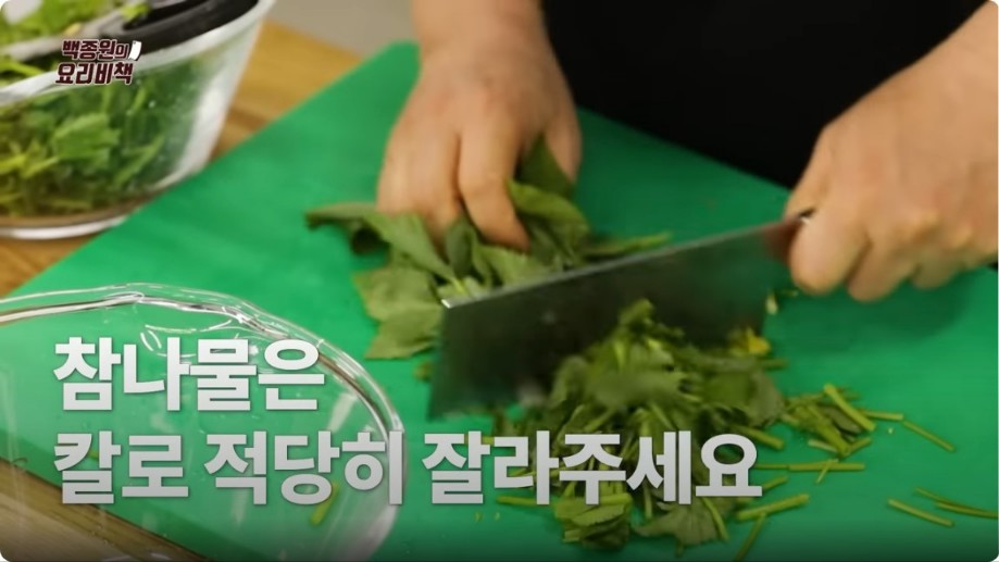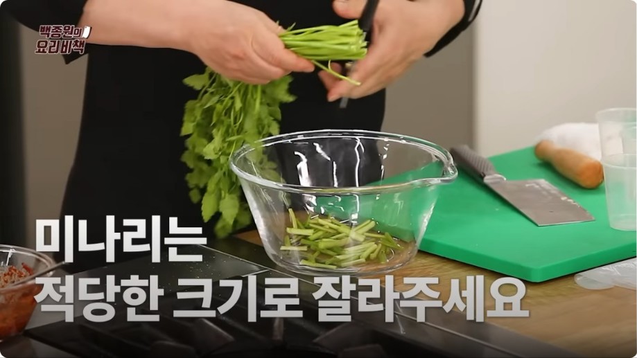 2. 미나리와 참나물은 적당한 길이로 잘라 볼에 담아 준비한다.