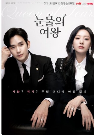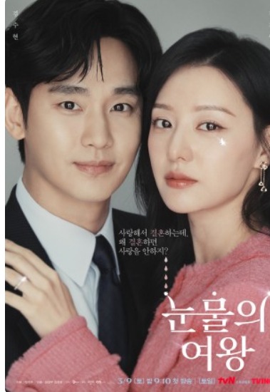 N드라마 눈물의 여왕이 3월 9일 첫 방영을 시작했습니다. 3년 차 부부인 퀸즈 그룹 재벌 3세인 홍해인(김지원)과 용두리 이장 아들 백현우(김수현)의 아찔한 위기와 기적처럼 다시 시작되는 사랑