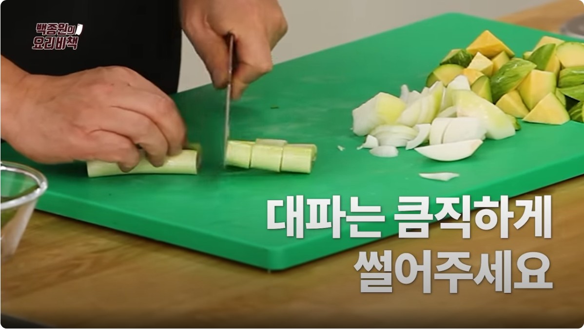 3. 대파는 큼직하게 썰어 준비한다.